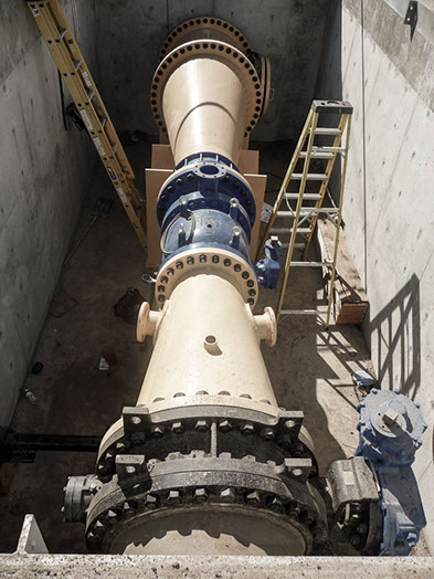 The Potter Valley Project for Pacific gas & electric (PG&E) that consisted of 60” and 36” Polyurethane lined and coated pipe. The job was designed to bypass the power plant from the existing dam and needed to be done in short time window. Since the project was a fast track job that required Jifco Inc. to Manufacture the pipe to meet the schedule. The fittings were complex and require extensive testing and treatment (heat treatment) throughout the fabrication process.