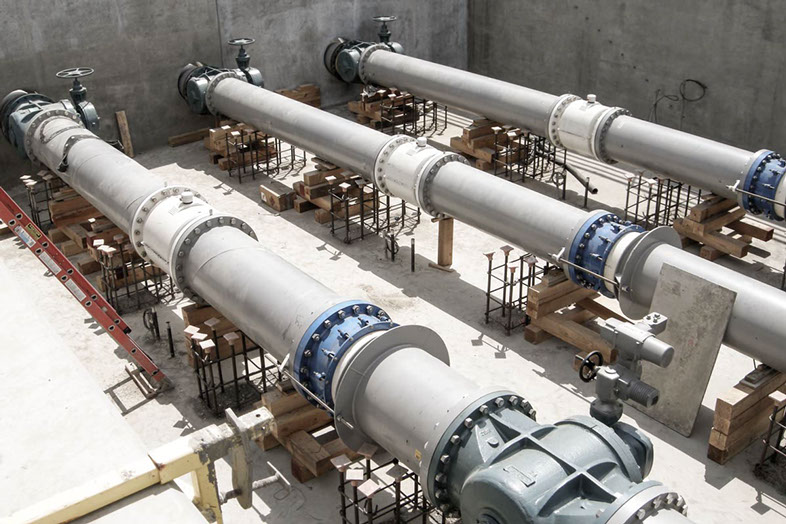 Jifco was selected by PCL construction for the San Jacinto Valley RWRF project do to past expancane working with Eastern Municipal Water District and Carollo Engineering strict specifications. This project consisted of two different sections (Plant 2 and Title 22) of the Water Treatment Plant to be built at the same time. Jifco and its partner Northwest Pipe worked together to meet the needs of the installing contractors’ aggressive start-up schedule. Furthermore, Jifco was selected by Flowserve Pumps to build 14 large diameter pump cans. The pump cans were 48” thru 36” diameter and over 33 feet long. All pump cans were fabricated and shipped to the job site within the tight fabrication tolerance of Flowserve Pumps.