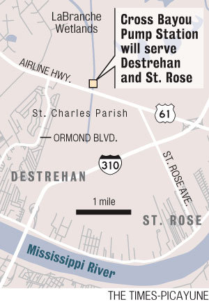 The $19 million Cross Bayou Pump Station, built with state and local funding, along with a $5 million donation from Shell and Motiva, is designed to keep homes and businesses dry by pumping 1,300 cubic feet of water per second out of a 12,000-acre drainage basin encompassing Destrehan and St. Rose.